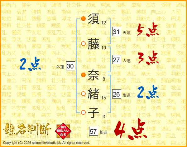 須藤奈緒子さんの総運は57画の4点!