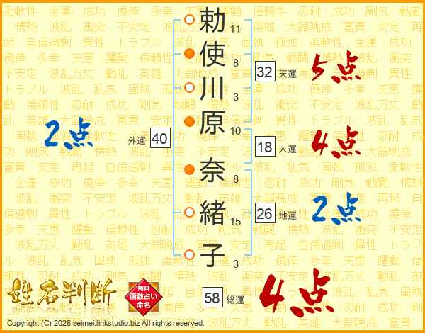 勅使川原奈緒子さんの総運は58画の4点!