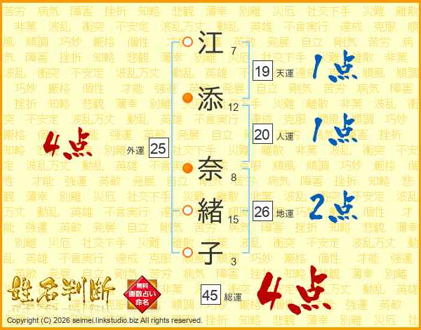 江添奈緒子さんの総運は45画の4点!