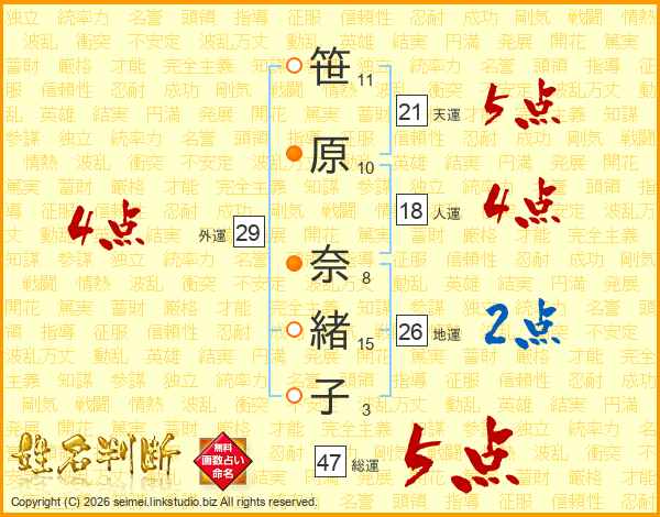 笹原奈緒子さんの総運は47画の5点!