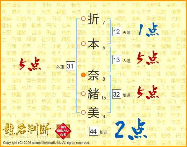 折本奈緒美さんの総運は44画の2点!