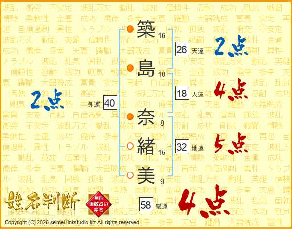 築島奈緒美さんの総運は58画の4点!