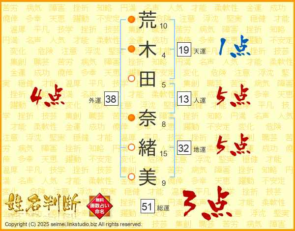 荒木田奈緒美さんの総運は51画の3点!
