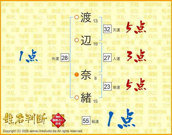 渡辺奈緒さんの総運は55画の1点!