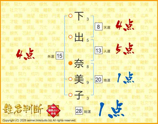 下出奈美子さんの外運は15画の4点!