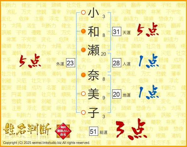 小和瀬奈美子さんの天運は31画の5点!