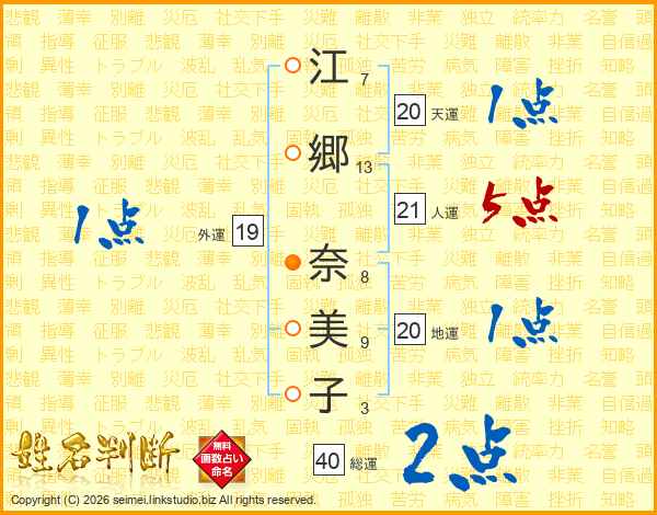 江(7画)郷(13画) 奈(8画)美(9画)子(3画)