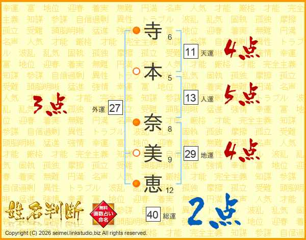 寺本奈美恵さんの総運は40画の2点!