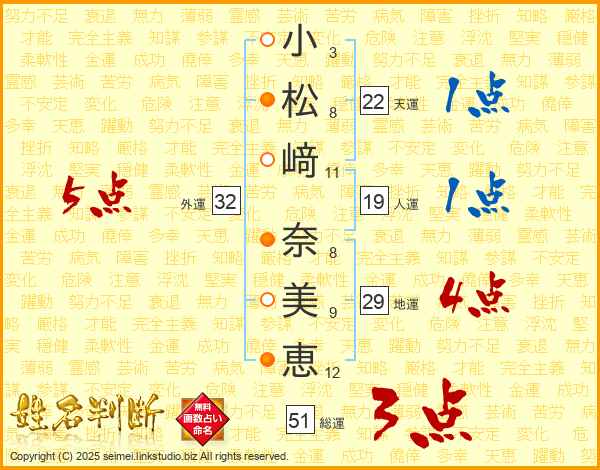 小松﨑奈美恵さんの総運は51画の3点!