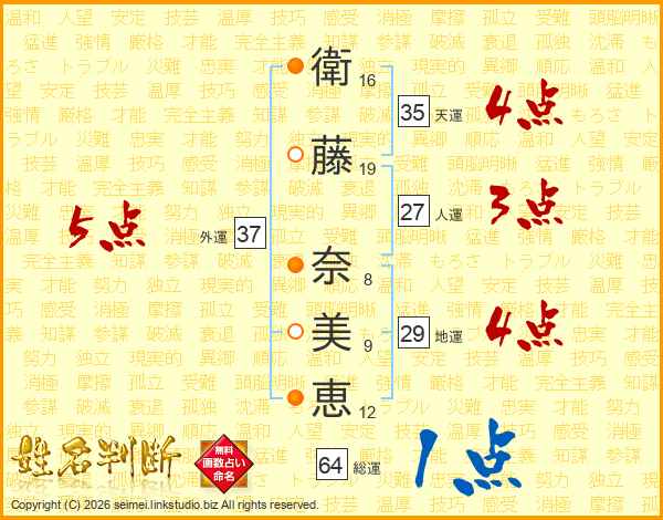 衛藤奈美恵さんの外運は37画の5点!