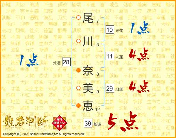 尾川奈美恵さんの総運は39画の5点!