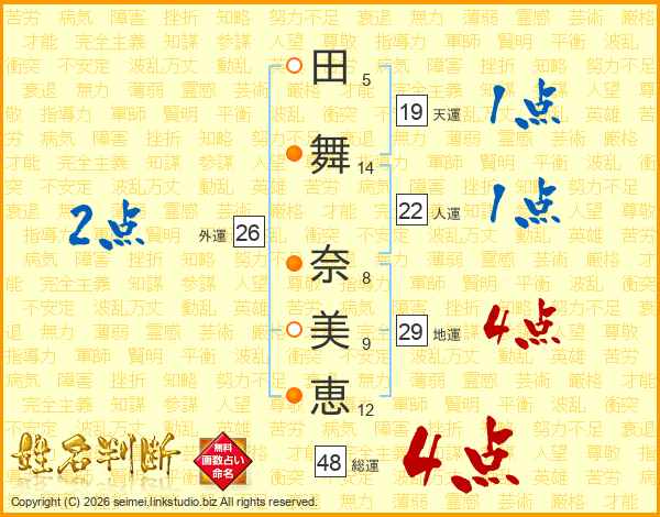 田舞奈美恵さんの総運は48画の4点!