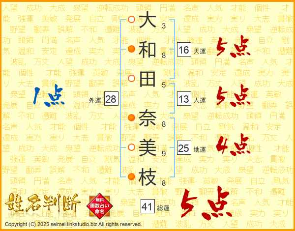 大和田奈美枝さんの総運は41画の5点!