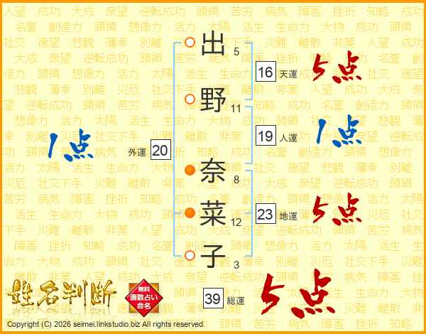出野奈菜子さんの総運は39画の5点!