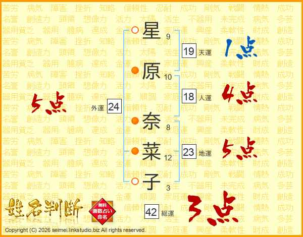 星原奈菜子さんの総運は42画の3点!