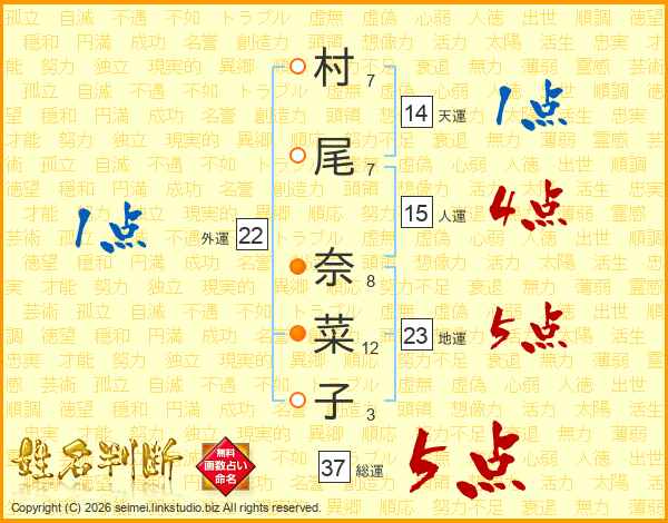 村尾奈菜子さんの総運は37画の5点!