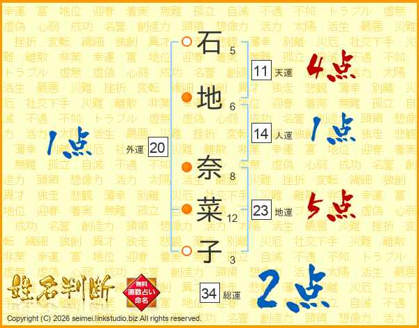 石地奈菜子さんの総運は34画の2点!