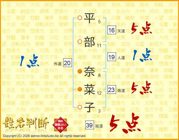 平部奈菜子さんの総運は39画の5点!