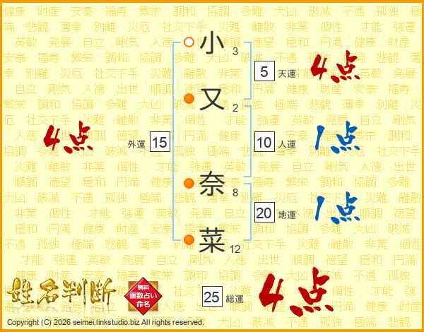 小又奈菜さんの総運は25画の4点!