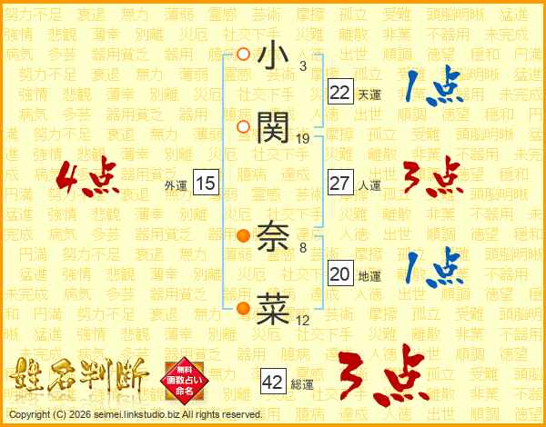 小関奈菜さんの人運は27画の3点!