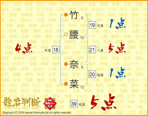 竹腰奈菜さんの総運は39画の5点!