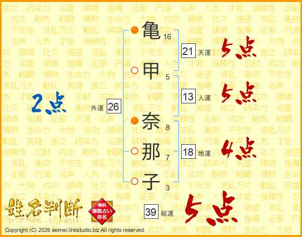 亀甲奈那子さんの総運は39画の5点!