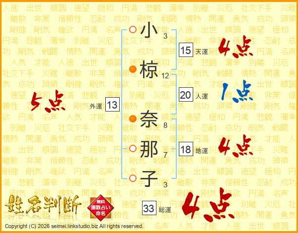 小椋奈那子さんの総運は33画の4点!