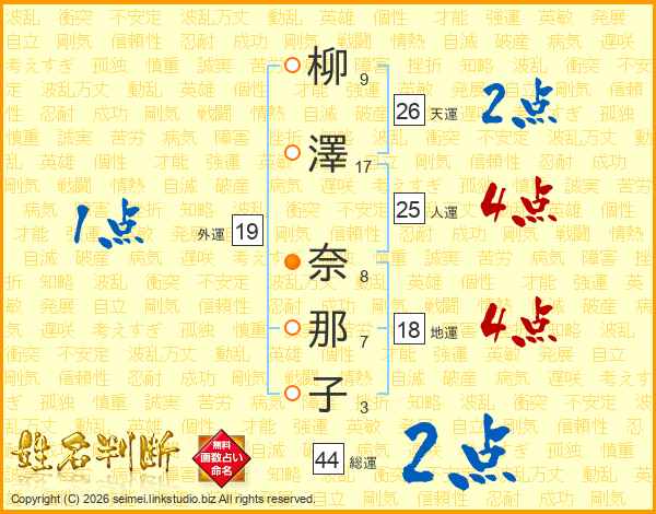 柳澤奈那子さんの天運は26画の2点!