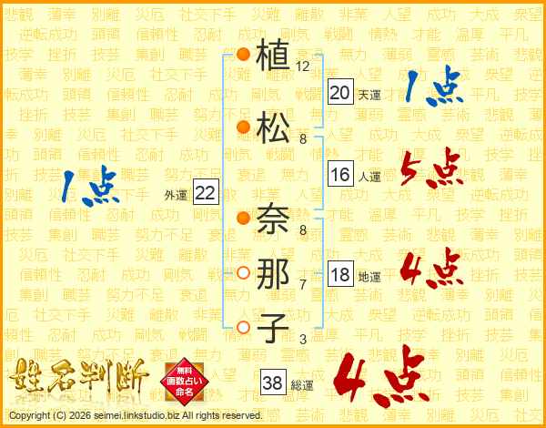 植(12画)松(8画) 奈(8画)那(7画)子(3画)