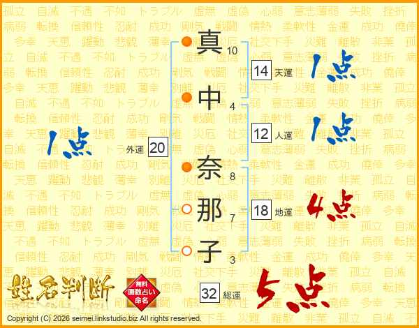 真中奈那子さんの総運は32画の5点!
