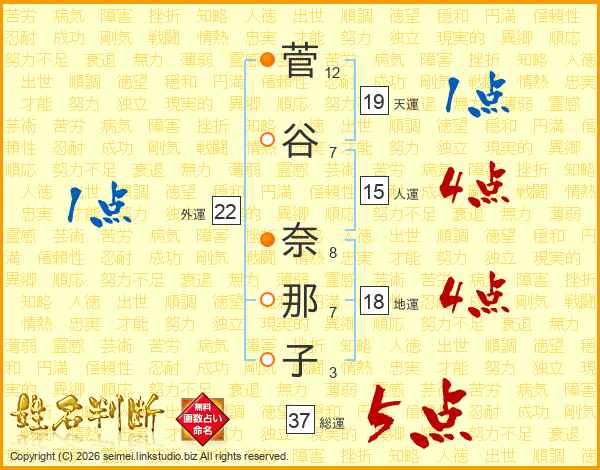 菅谷奈那子さんの総運は37画の5点!
