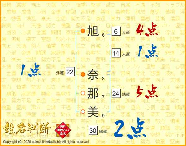 旭奈那美さんの総運は30画の2点!