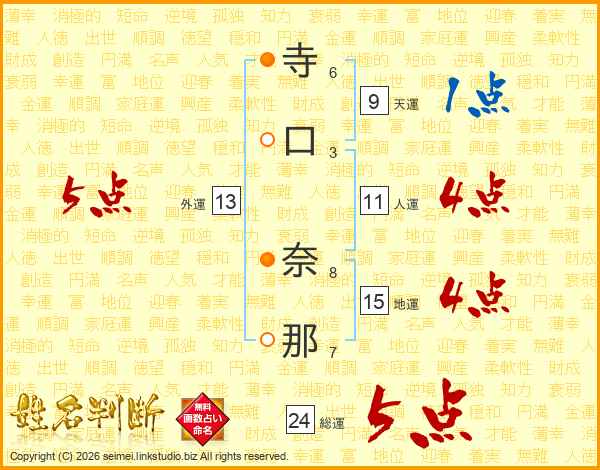 寺口奈那さんの外運は13画の5点!