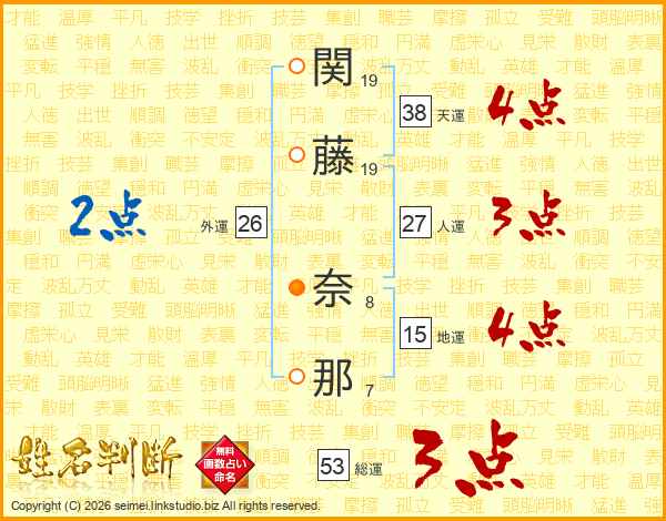 関藤奈那さんの天運は38画の4点!