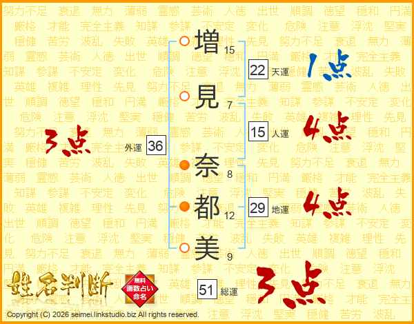増見奈都美さんの人運は15画の4点!