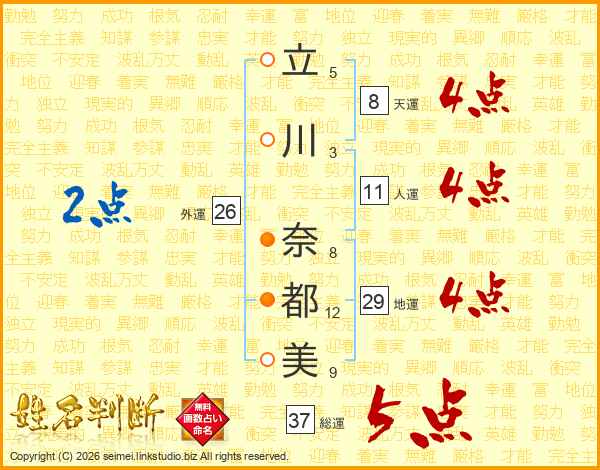 立川奈都美さんの総運は37画の5点!