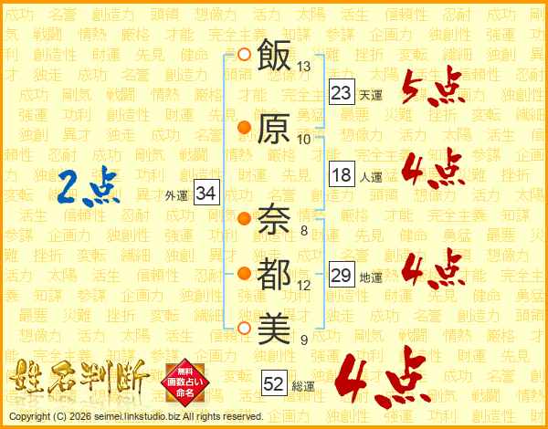 飯原奈都美さんの総運は52画の4点!