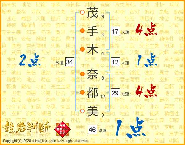 茂手木奈都美さんの天運は17画の4点!