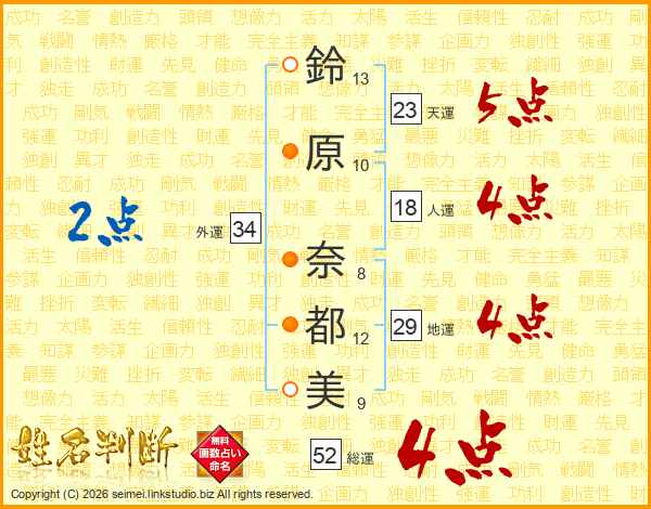 鈴(13画)原(10画) 奈(8画)都(12画)美(9画)