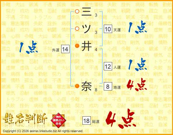 三ツ井奈さんの総運は18画の4点!