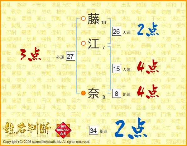 藤江奈さんの天運は26画の2点!