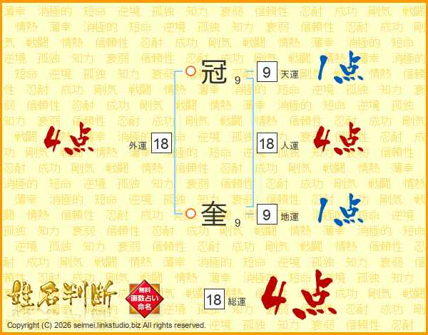 冠奎さんの人運は18画の4点!