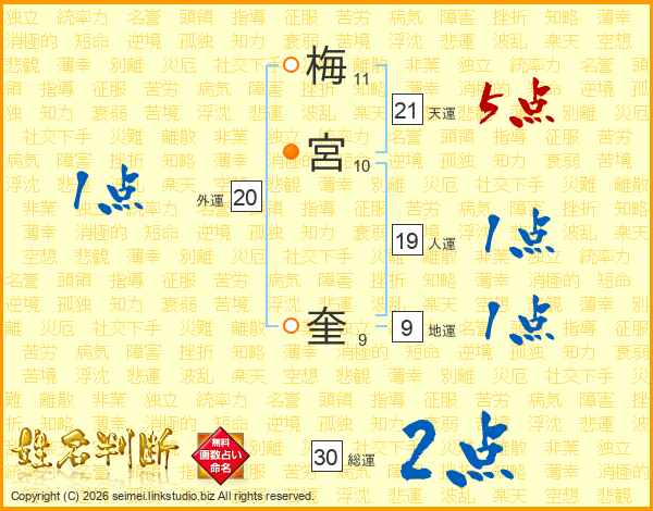 梅(11画)宮(10画) 奎(9画)