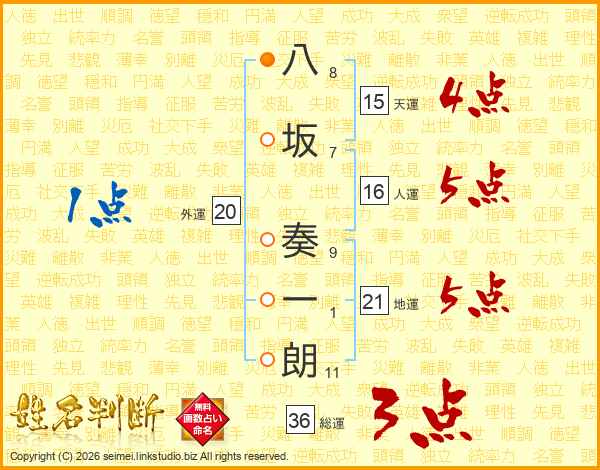 八坂奏一朗さんの総運は36画の3点!