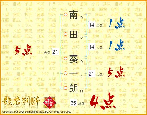 南田奏一朗さんの総運は35画の4点!