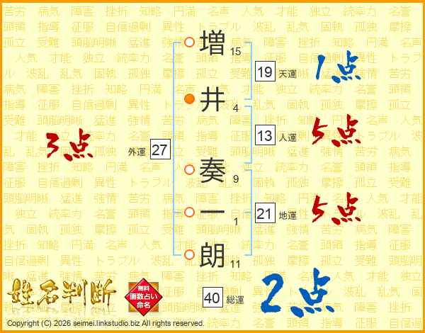 増井奏一朗さんの総運は40画の2点!