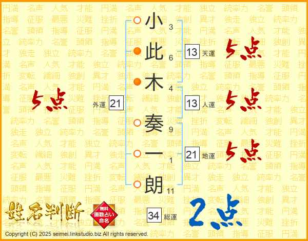 小(3画)此(6画)木(4画) 奏(9画)一(1画)朗(11画)