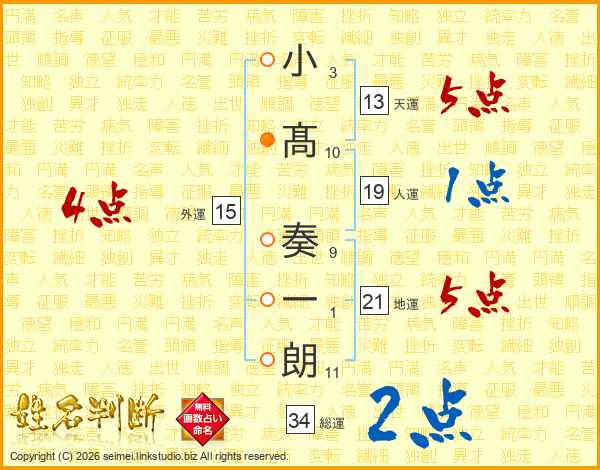 小髙奏一朗さんの総運は34画の2点!