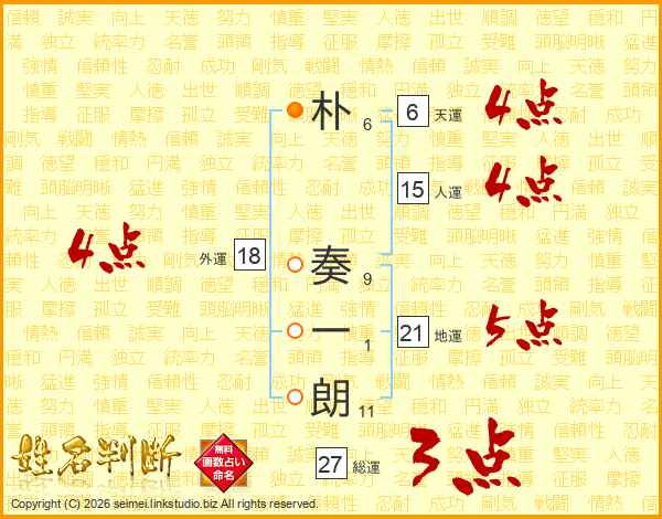 朴奏一朗さんの外運は18画の4点!