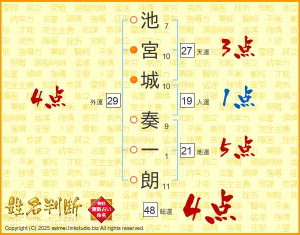 池宮城奏一朗さんの天運は27画の3点!